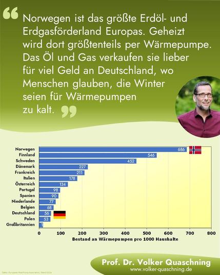 @VQuaschning Norwegen heizt mit Wärmepumpen, oder direkt mit Strom. Das liegt aber auch daran das dort der Verdienst erheblich höher ist und die Strompreise erheblich niedriger, bedingt durch die hohe Verfügbarkeit von Wasserkraft seit vielen Jahren. Das muss man fairerweise dazu sagen, wenn man mit DE vergleicht.