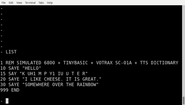 Now, this bears fruit: It made it say to add the SAY command. A few posts above, I was sending phoneme numbers as numbers.