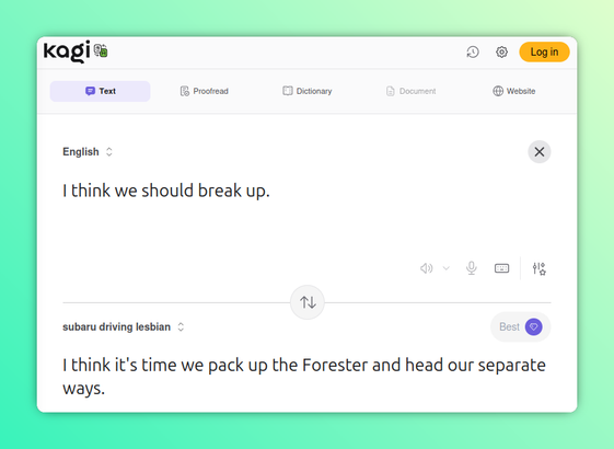 https://translate.kagi.com/?text=I+think+we+should+break+up.&from=en&to=subaru+driving+lesbian